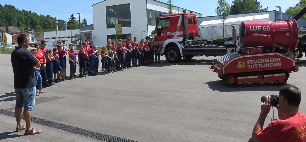 Nach einer spannenden Videonacht mit reichlich Chips und viel Gelächter, gings am anderen Morgen voller Vorfreude nach Tuttlingen zur Feuerwehrbesichtigung. Bei einem Rundgang konnten wir neuste Technik hautnah erleben. Da bekam so manch einer große Augen, als z.B. der LUF 60 ferngesteuert über den Hof gefahren wurde. Herzlichen Dank hierfür den Feuerwehrkameraden aus Tuttlingen für die tolle Führung!
