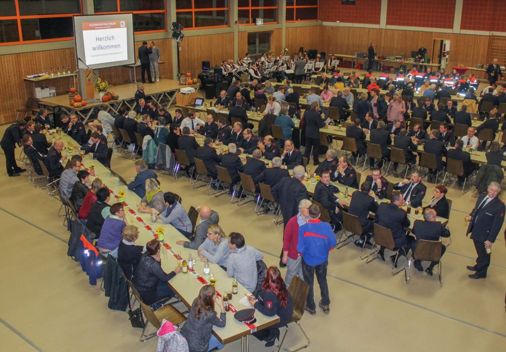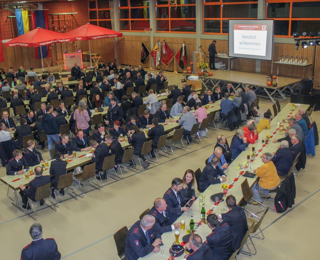 Im Anschluss an den offiziellen Teil fand das Fest für die Helfer beim großen Jugendfeuerwehr-Zeltlager statt. So fanden sich nahezu 200 Feuerwehrangehörige, Partnerinnen, Freunde, Unterstützer und weitere geladene Gäste in der Eigeltinger Halle ein.