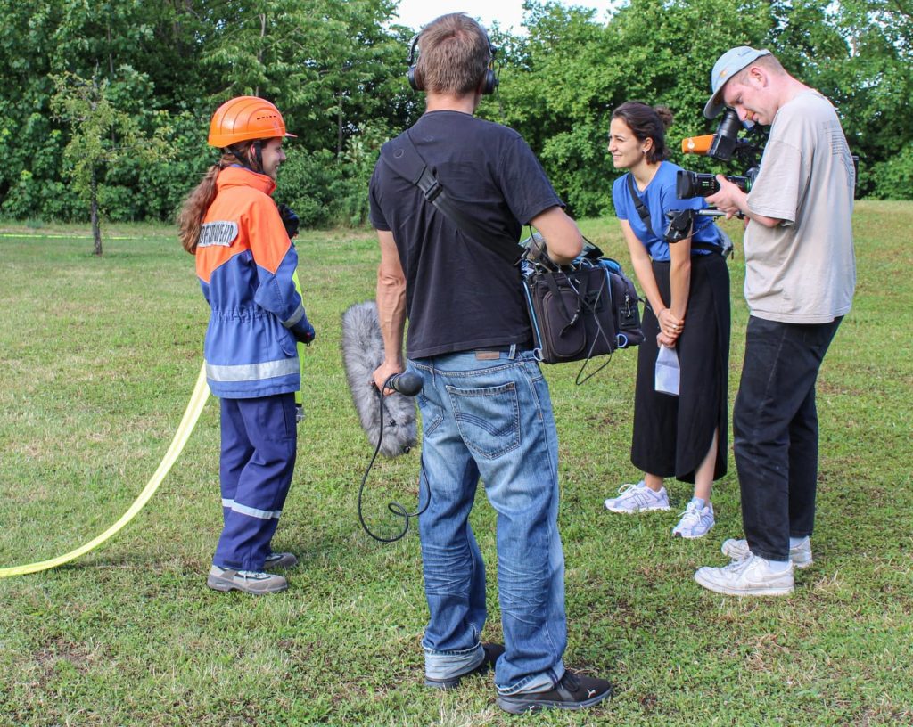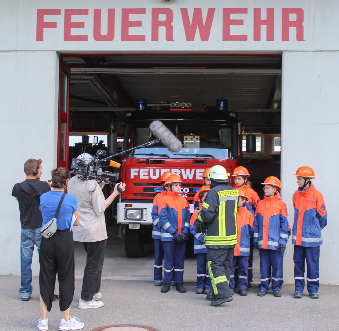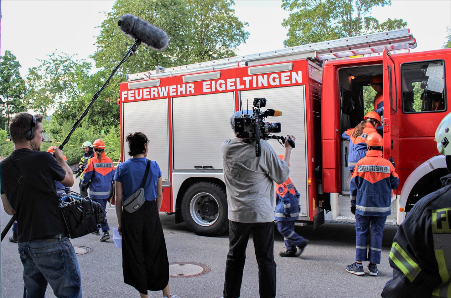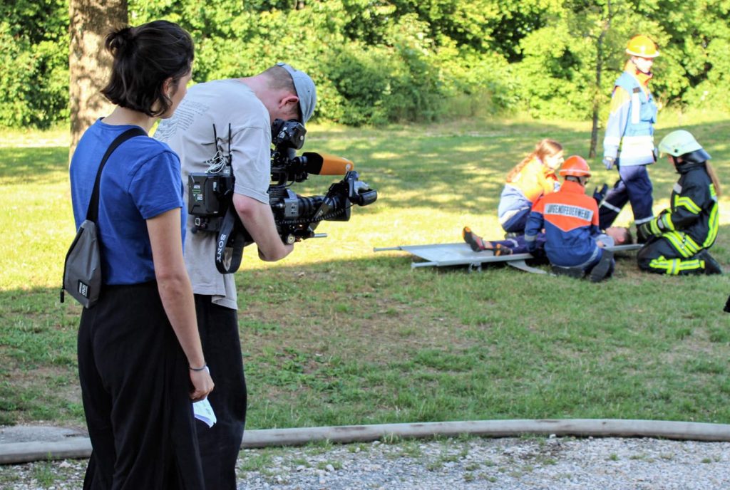 Eine Feuerwehrprobe der besonderen Art erlebten die Kinder und Jugendlichen am 3. Juli. In Eigeltingen war ein Fernsehteam von logo! zu Gast, einer Nachrichtensendung des ZDF für Kinder. Saadet, die Studiomoderatorin war mit Tontechniker Martin und Kameramann David gekommen, um einen Bericht zu „Mädchen in der Jugendfeuerwehr“ zu drehen. Hautnah erlebten die Teilnehmer wie Fernsehaufnahmen funktionieren und durften sich wie kleine Stars fühlen. Wie vom Team gewünscht haben sich die Jugendfeuerwehrler ganz normal verhalten und z.B. auch nicht direkt in die Kamera geschaut. Gleich zu Beginn gaben die 10jährige Ronja und die 12jährige Lilli ein Interview und sorgten für das Intro der Sendung. Lilli durfte dann im weiteren Verlauf auch eine Helmkamera tragen. Zum Einsatz kam auch eine Drohne. Spannend war es nicht nur für die Eigeltinger, die gefilmt und interviewt wurden. Sondern sicherlich auch für das TV-Team, die einen professionell durchgeführten Löschangriff mit Personenrettung sahen. Hier wirkten 5 Jungen in der üblichen 9-Gruppe zusammen mit 4 Mädchen. Auch Soraya (12 Jahre) und die 15jährige Ronja konnten im Interview bestätigen, dass Feuerwehr nur durch Teamarbeit funktioniert und besonders in Eigeltingen die Zusammenarbeit zwischen Mädchen und Jungen sehr gut, normal und gewohnt ist. Hierfür sorgen auch die 10 Betreuer unter Jugendwart Frank Gommeringer. Auch bei der Übung, die logo! filmte, wurde hier wie auch sonst üblich unterstützt, erklärt und geholfen. Wie immer lehrreich, aber auch mit Spiel, Spaß und Wasser. Was für den Feuerwehrnachwuchs wichtig ist und auch in den Interviews zum Ausdruck gebracht wurde. Ebenso mit dem Feuerwehrauto fahren gefällt sehr. Zum simulierten brennenden Baum wurde mit dem großen Löschgruppenfahrzeug angerückt, das gleiche Equipment wie die „Großen“ genutzt und auch ein kleiner Junge, der den Verletzten mimte, wurde mit der regulären Krankentrage gerettet. Vorurteile gegen Mädchen in der Feuerwehr haben die Kinder und Jugendlichen zwar schon gehört, aber in Eigeltingen gibt es diese in der Praxis nicht. Aktuell gibt es daher auch in den Einsatzabteilungen der Gesamtwehr 11 Frauen, die auch Gruppenführer, Maschinist und Atemschutzgeräteträger sind und von denen die meisten – auch aufgrund der sehr guten Jugendarbeit dort – aus der Jugendfeuerwehr kommen. Zu dem Kreis gehört aber auch eine Frau, die mit Mitte 40 erstmalig ihren Dienst begonnen hat. Feuerwehr ist daher für Mädchen und Jungen, Frauen und Männer fast jeden Alters möglich. Die Einsatzabteilungen freuen sich über erwachsene engagierte Eigeltinger, die dieses Ehrenamt lernen und helfen wollen. Und auch bei der Jugendfeuerwehr sind wieder Plätze frei. Proben für den jungen Nachwuchs ab 8 Jahren sind immer montags von 18:00 bis 19:15 Uhr. Hier gibt es Feuerwehrtechnik zum Erleben und Mitmachen. Und Spaß und Spiel, auch bei gemeinsamen Freizeitaktivitäten kommen nicht zu kurz.