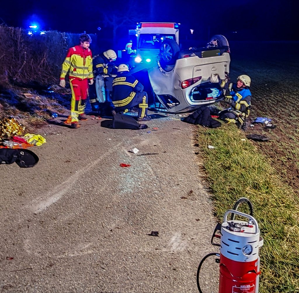 Bis zum Eintreffen der Einsatzkräfte war die Lage noch als unklar gemeldet. Auf dem Radweg neben der L194 von Eigeltingen nach Nenzingen wurde dann ein Mitsubishi Colt auf dem Dach liegend vorgefunden. Der Wagen war von der Fahrbahn abgekommen und hatte sich überschlagen. Alle 4 Insassen hatten sich bereits selbstständig aus dem Fahrzeug befreit. Die medizinische Erstversorgung wurde durch Feuerwehrsanitäter der Abt. Eigeltingen sowie durch die HvO übernommen. Die Verletzten wurden an den erstalarmierten Rettungswagen sowie an den durch die Feuerwehr nachgeforderten übergeben.Die Einsatzstelle wurde ausgeleuchtet, der Brandschutz sichergestellt und weitere Sicherungsmaßnahmen durchgeführt. Wegen des Unfallhergangs und des Schadens verweisen wir an die Polizei.
