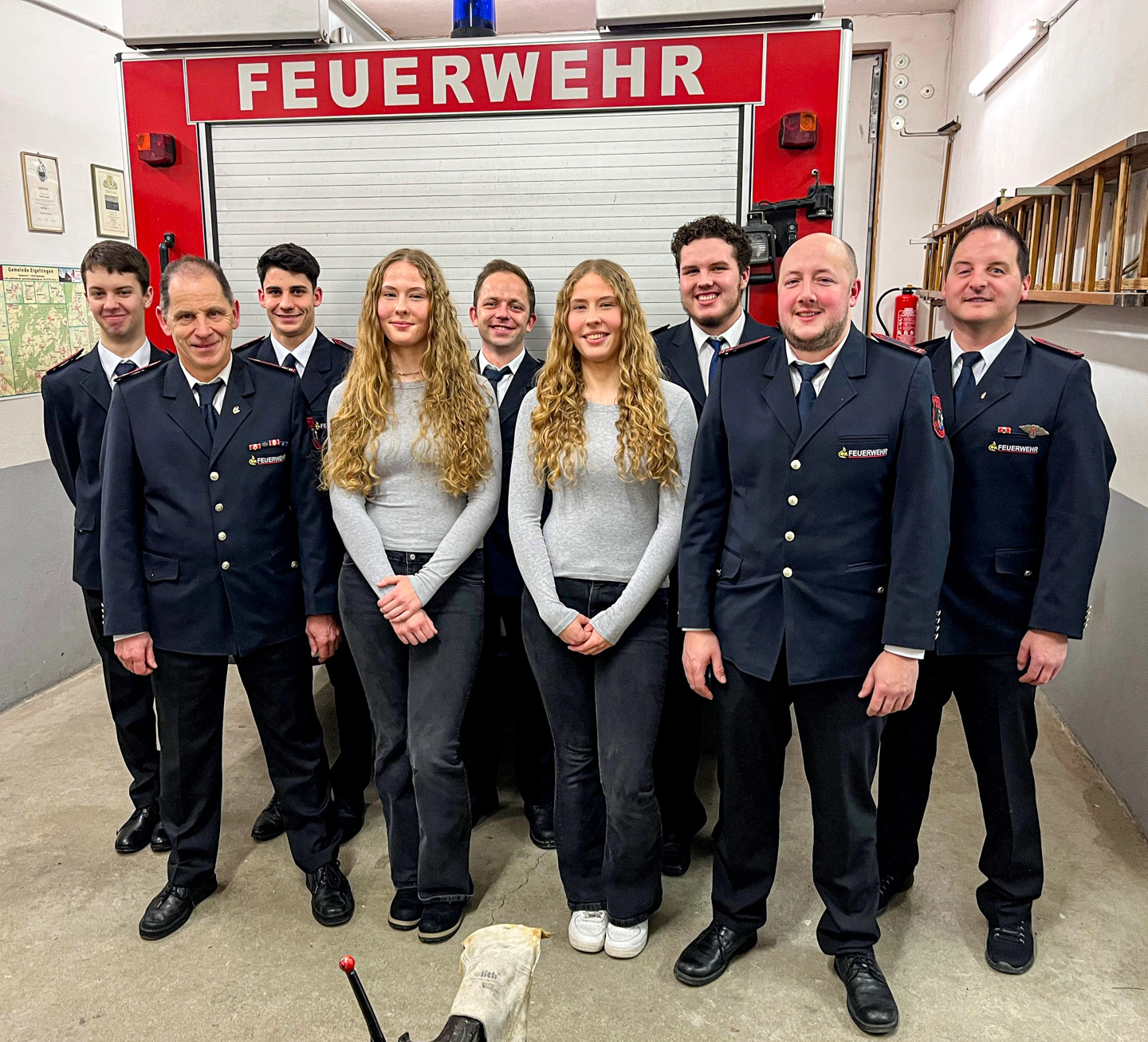 Nach vielen Jahren als Stellvertreter leitete er nun erstmalig als neuer Abteilungskommandant die Sitzung. Berichten konnte er über 6 Einsätze wie Verkehrsunfälle oder Kaminbrand. Proben haben auch mit anderen Eigeltinger Abteilungen und in Sauldorf stattgefunden. Zur gemeinsamen Übung der vier Heudorfer Feuerwehren traf man sich in Scheer. Mit der Gesamtwehr wurde auch das große Narrentreffen gestemmt. Für den Parkplatzdienst und die Absicherung bedankte sich der Vorstand des Narrenvereins Patrick Roth. Das Sauerkrautfest und die Blaulichtparty, erstmalig mit Kinderdisco von 17.00 bis 19.30 Uhr sorgte für einen finanziellen Ausgleich, so dass es einen positiven Bericht des Kassiers Martin Roth, der das Amt seit 28 Jahren innehat, gab. Ortvorsteher Manuel Ramsperger konnte somit auch die Entlastung vornehmen lassen und bedankte sich im weiteren Verlauf bei der Feuerwehr. Der Zusammenhalt im Dorf zeigt sich auch an der Teilnahme an den Festen der Vereine. Hier hatten die Feuerwehrmänner z.B. auch das Kartturnier des MSC gewonnen. Dies unterstrich auch Kommandant Ralf Martin und lobte die gegenseitige Unterstützung. Diese Tatkraft soll auch beim Kreisfeuerwehrtag in Eigeltingen vom 10. bis 12. Juli gezeigt werden. Für die Kameradschaft wird für die Heudorfer in diesem Jahr ein Ausflug organisiert. Geschenke in Form eines Flaschenöffners gab es für die besten Probenbesuche. Der Abteilungskommandant, der die Ausbildung zum Zugführer an der Landesfeuerwehrschule erfolgreich absolviert hatte, konnte den neu ausgebildeten Gruppenführer Benjamin Widemann zum Löschmeister befördern. Der stellvertretende Abteilungskommandant Steven Noll erhielt die Beförderung zum Oberlöschmeister. Mit Stolz konnte Kurt Fichthaler dem Schriftführer, seinem Sohn Simon, die Schulterklappen für den Oberfeuerwehrmann anstecken. Nach erfolgreicher Absolvierung des Grundlehrgang sind Justin Hoefer und Phillip Thunig nun Feuerwehrmänner, Benjamin Beyer wurde zum „Helfer vor Ort“ ausgebildet. Neu in die Einsatzabteilung aufgenommen wurden Laura und Leonie Hoefer.